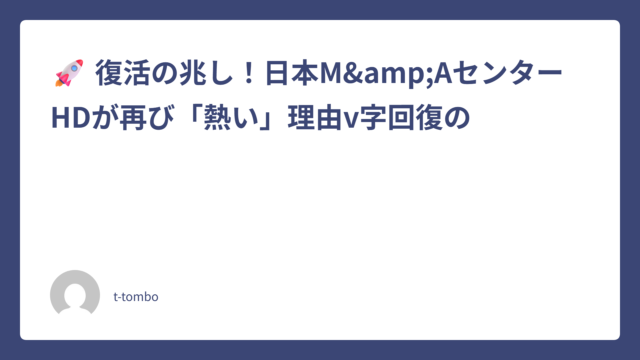 🚀 復活の兆し!日本M&AセンターHDが再び「熱い」理由