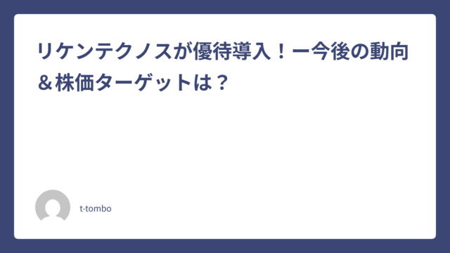リケンテクノスが優待導入!ー今後の動向&株価ターゲットは?