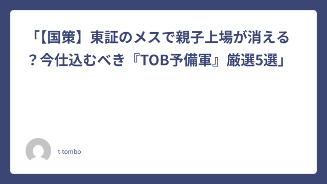 「【国策】東証のメスで親子上場が消える?今仕込むべき『TOB予備軍』厳選5選」