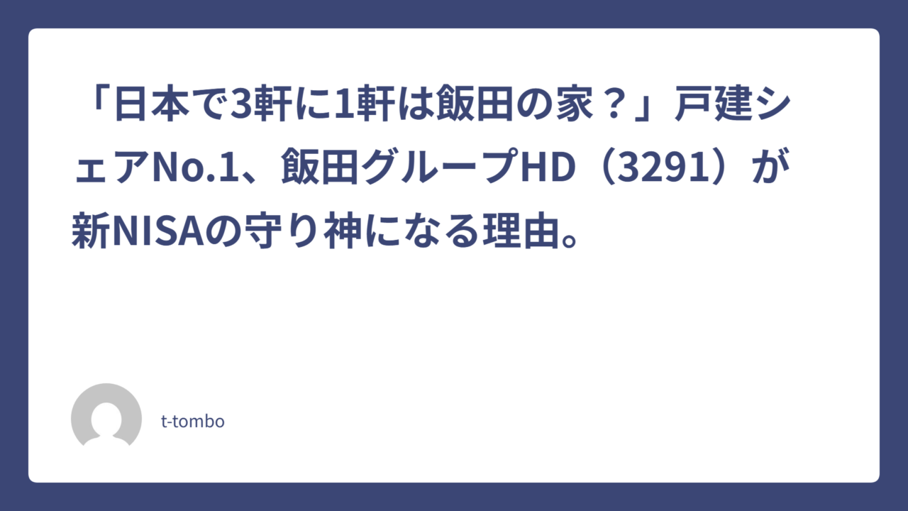 「日本で3軒に1軒は飯田の家?」戸建シェアNo.1、飯田グループHD(3291)が新NISAの守り神になる理由。