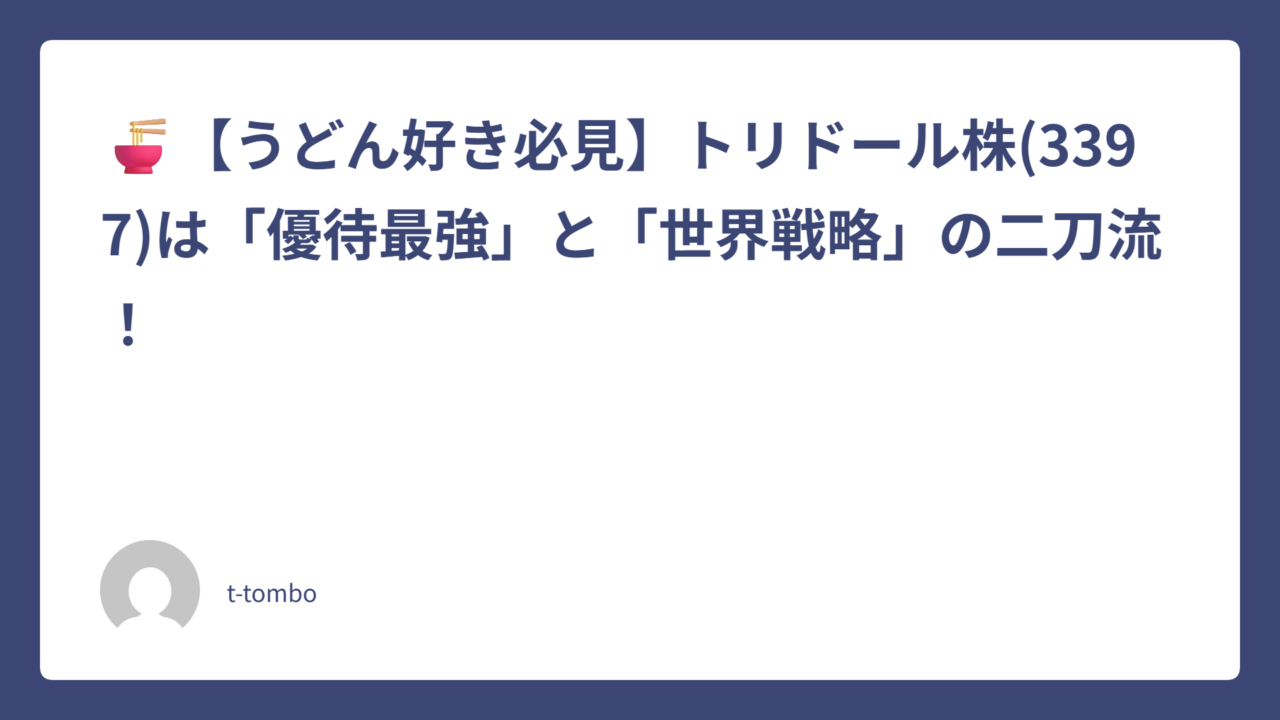 🍜【うどん好き必見】トリドール株(3397)は「優待最強」と「世界戦略」の二刀流!