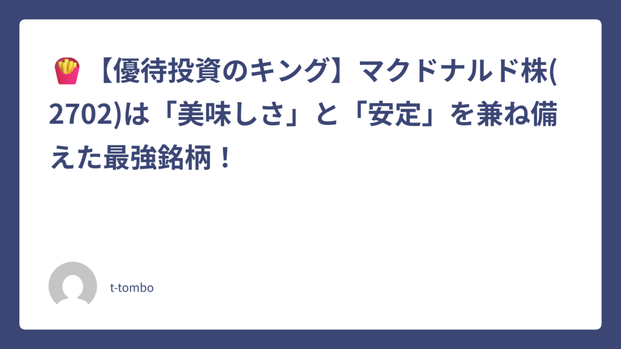 🍟【優待投資のキング】マクドナルド株(2702)は「美味しさ」と「安定」を兼ね備えた最強銘柄!