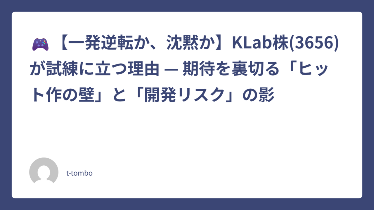 🎮【一発逆転か、沈黙か】KLab株(3656)が試練に立つ理由 — 期待を裏切る「ヒット作の壁」と「開発リスク」の影