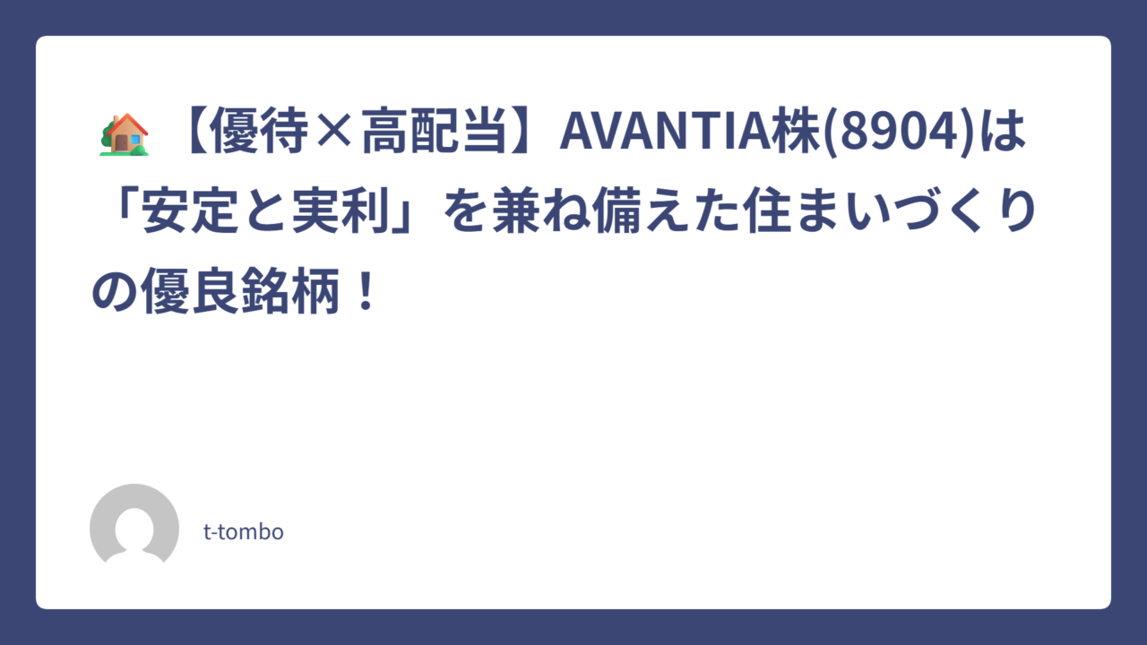 🏡【優待×高配当】AVANTIA株(8904)は「安定と実利」を兼ね備えた住まいづくりの優良銘柄!