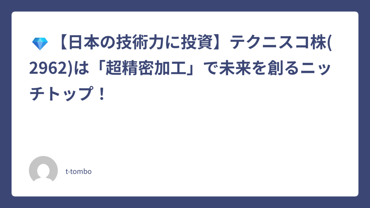 💎【日本の技術力に投資】テクニスコ株(2962)は「超精密加工」で未来を創るニッチトップ!