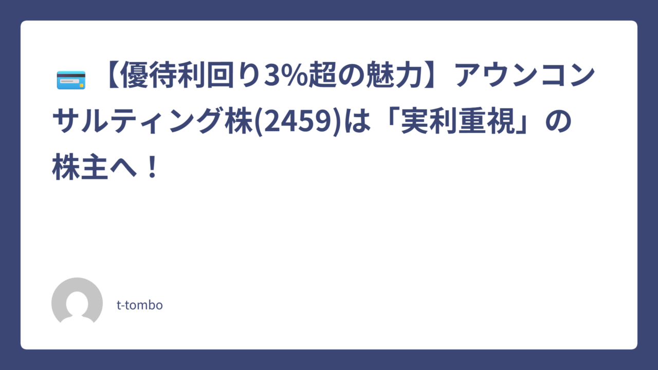 💳【優待利回り3%超の魅力】アウンコンサルティング株(2459)は「実利重視」の株主へ!