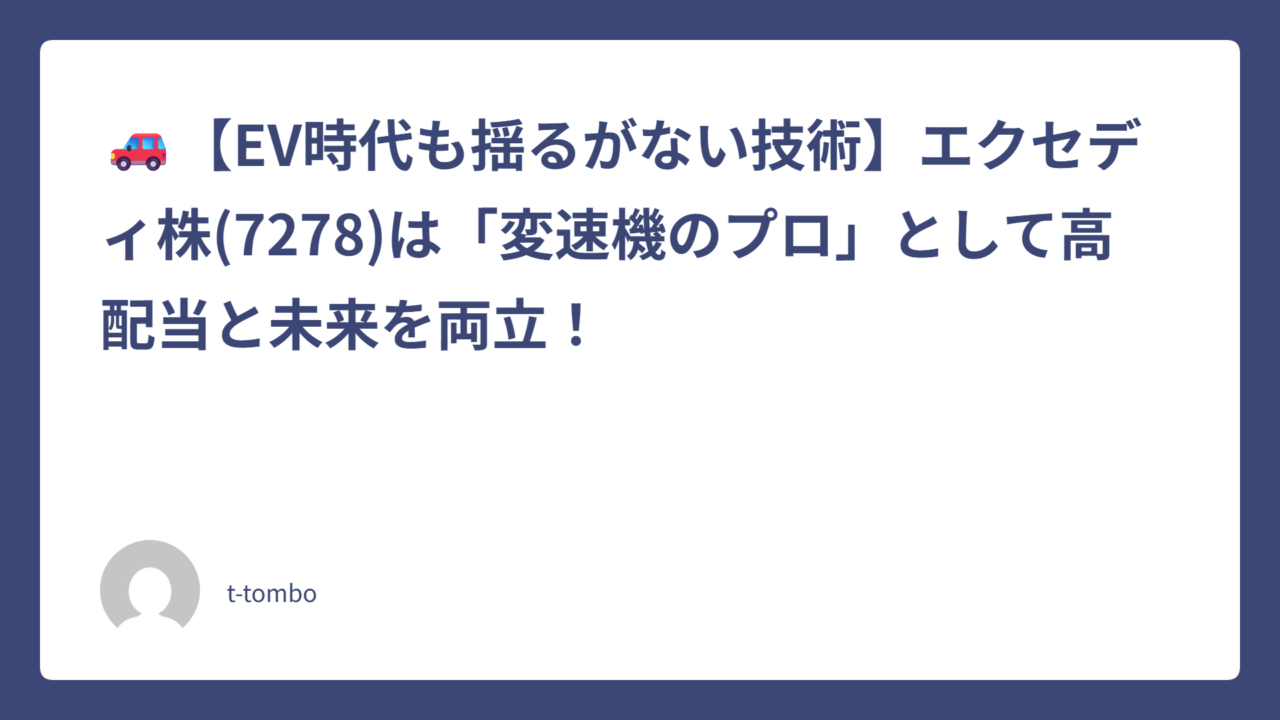 🚗【EV時代も揺るがない技術】エクセディ株(7278)は「変速機のプロ」として高配当と未来を両立!