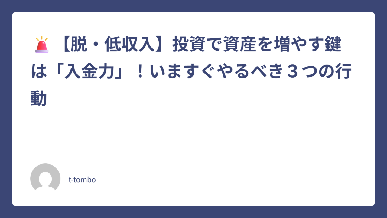 🚨【脱・低収入】投資で資産を増やす鍵は「入金力」!いますぐやるべき3つの行動
