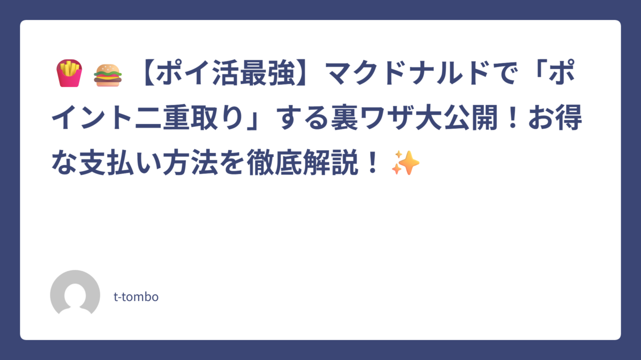 🍟🍔【ポイ活最強】マクドナルドで「ポイント二重取り」する裏ワザ大公開!お得な支払い方法を徹底解説!✨