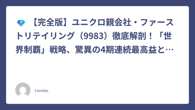 お得な銘柄 💎 【完全版】ユニクロ親会社・ファーストリテイリング(9983)徹底解剖!「世界制覇」戦略、驚異の4期連続最高益と投資家が知るべき真実 🚀🛍️ 2025年11月8日 t-tombo t-tombo Blog