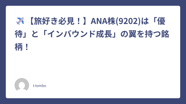 ✈️【旅好き必見!】ANA株(9202)は「優待」と「インバウンド成長」の翼を持つ銘柄!