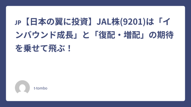🇯🇵【日本の翼に投資】JAL株(9201)は「インバウンド成長」と「復配・増配」の期待を乗せて飛ぶ!