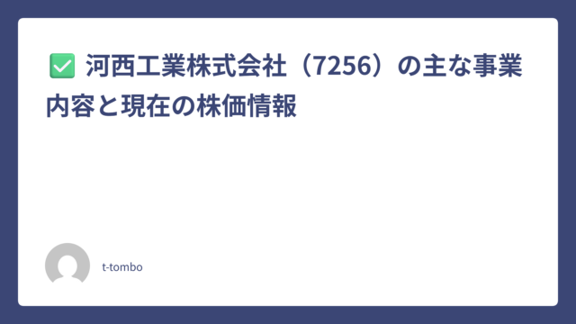 ✅ 河西工業株式会社(7256)の主な事業内容と現在の株価情報